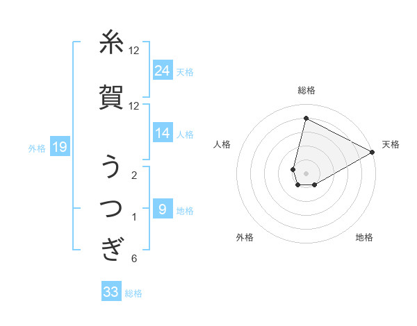 糸賀 うつぎさんを姓名の画数から五運を鑑定