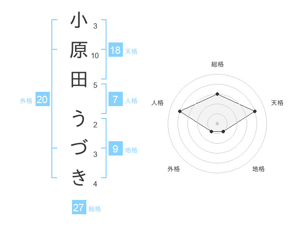 小原田 うづきさんを姓名の画数から五運を鑑定