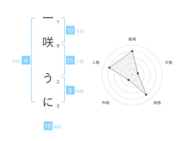 一咲 うにさんの総格は15画の4点!