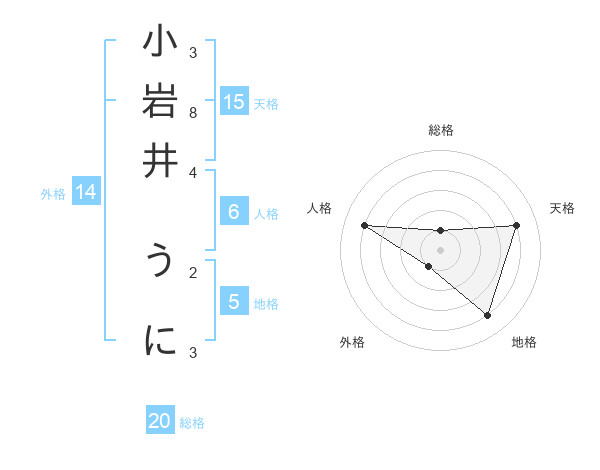 小岩井 うにさんの総格は20画の1点!