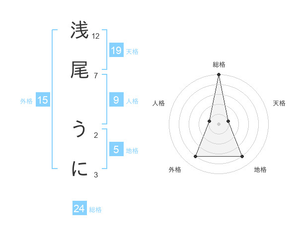浅尾 うにさんの総格は24画の5点!