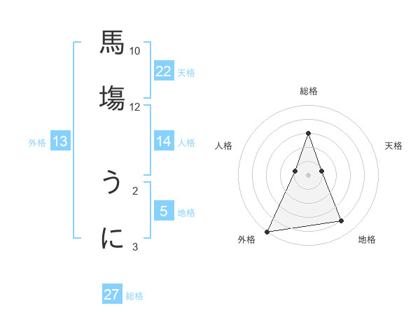 馬塲 うにさんの外格は13画の5点!