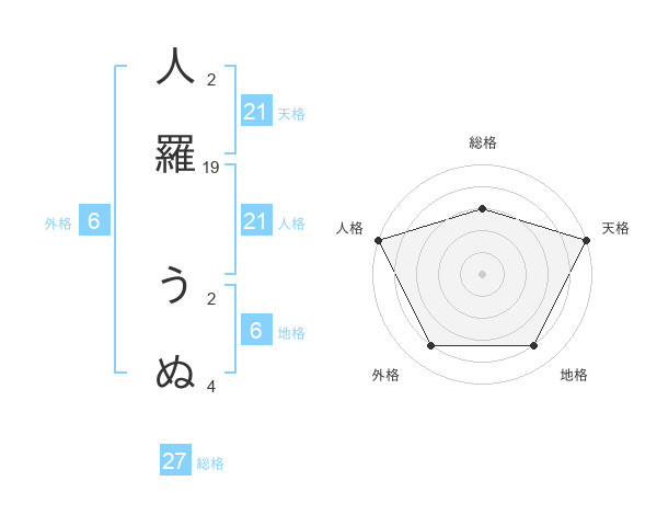 人羅 うぬさんの総格は27画の3点!