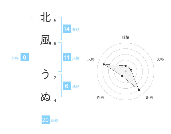 北風 うぬさんの総格は20画の1点!