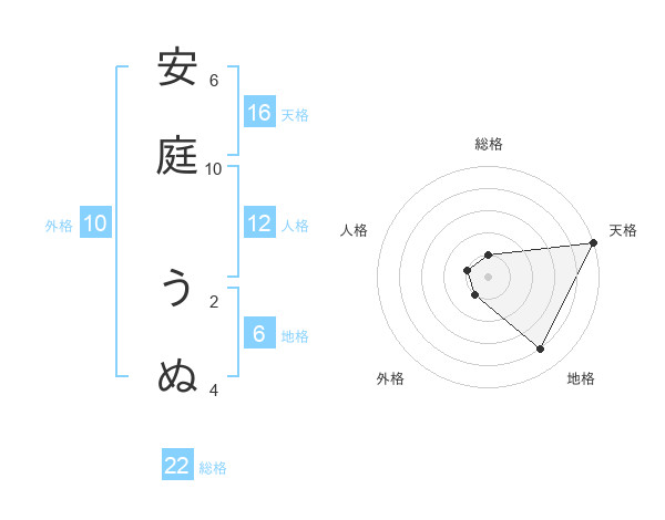 安庭 うぬさんの天格は16画の5点!