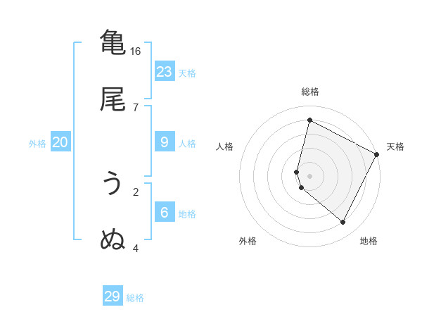 亀尾 うぬさんの総格は29画の4点!