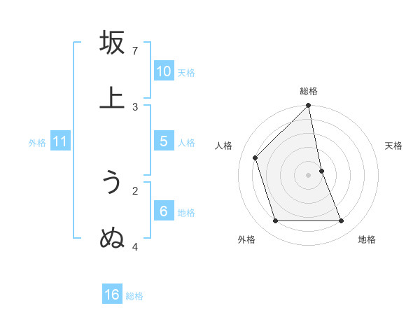 坂上 うぬさんの外格は11画の4点!