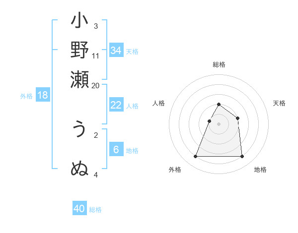 小野瀬 うぬさんを姓名の画数から五運を鑑定
