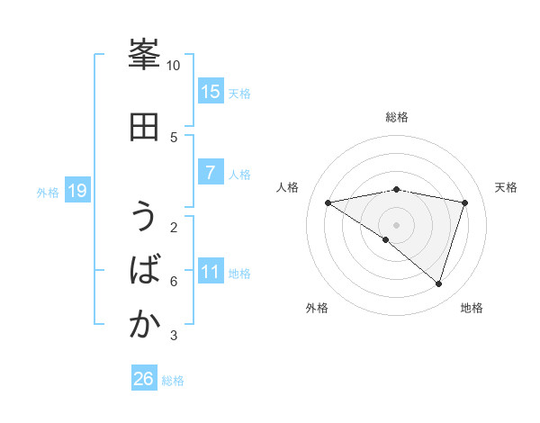 峯田 うばかさんを姓名の画数から五運を鑑定