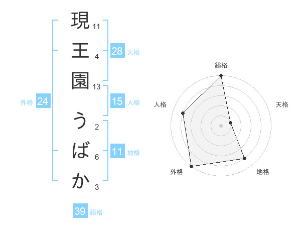 現王園 うばかさんを姓名の画数から五運を鑑定
