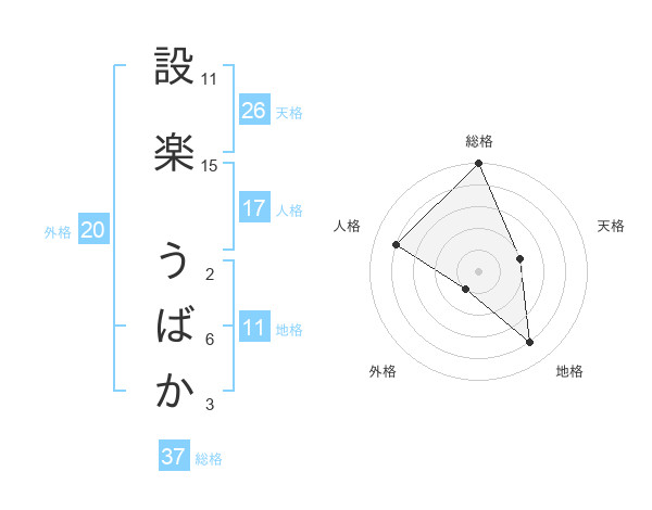 設楽 うばかさんを姓名の画数から五運を鑑定
