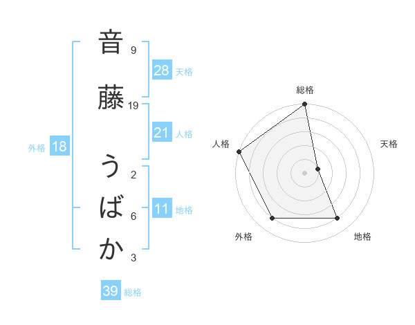 音藤 うばかさんを姓名の画数から五運を鑑定