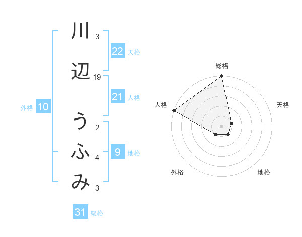 川辺 うふみさんの総格は31画の5点!