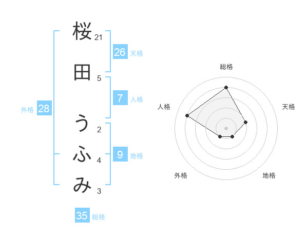 桜田 うふみさんを姓名の画数から五運を鑑定