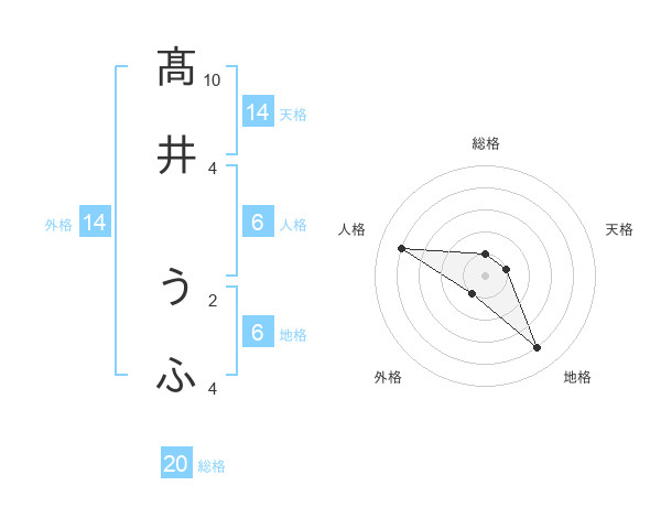 髙井 うふさんの総格は20画の1点!