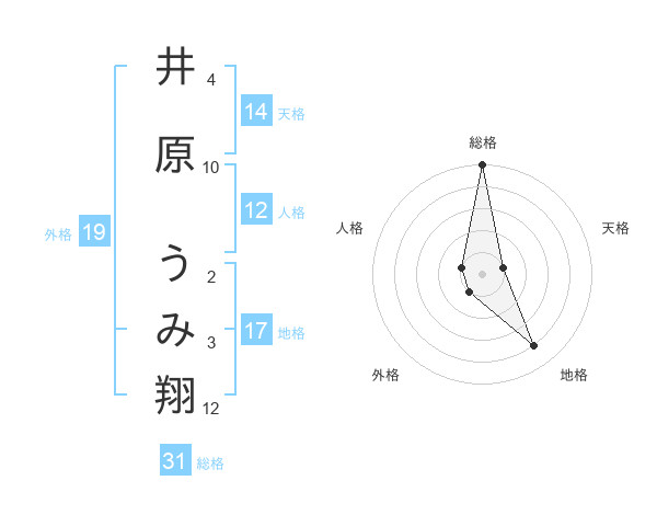井原 うみ翔さんを姓名の画数から五運を鑑定