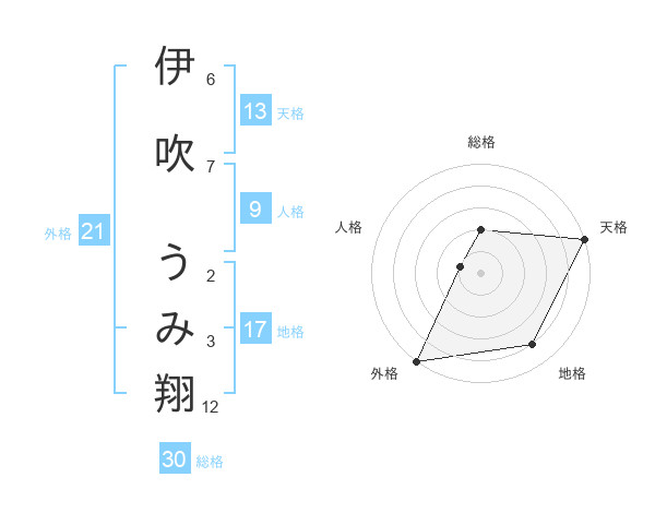 伊吹 うみ翔さんを姓名の画数から五運を鑑定