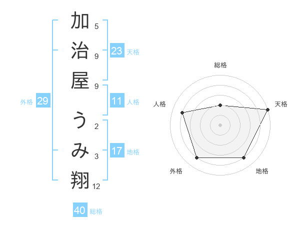 加治屋 うみ翔さんの天格は23画の5点!