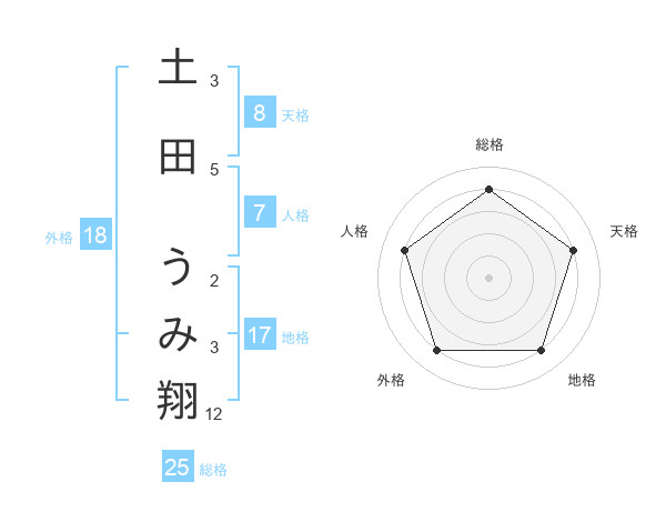 土田 うみ翔さんを姓名の画数から五運を鑑定