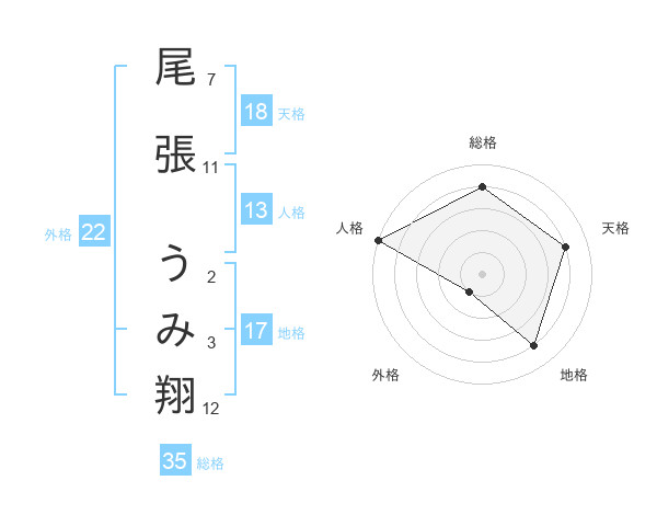 尾張 うみ翔さんを姓名の画数から五運を鑑定