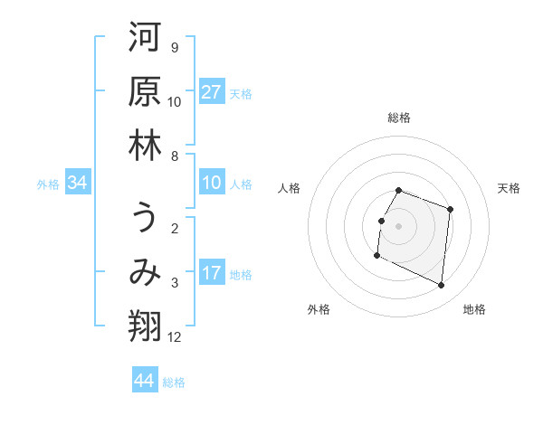 河原林 うみ翔さんの地格は17画の4点!