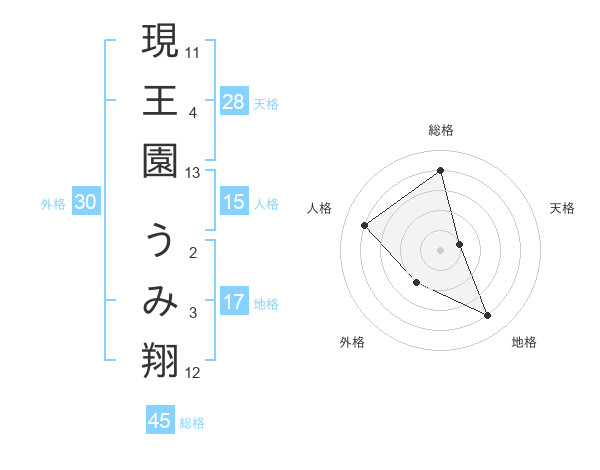 現王園 うみ翔さんを姓名の画数から五運を鑑定