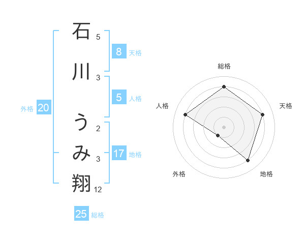 石川 うみ翔さんの総格は25画の4点