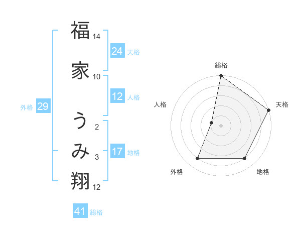 福家 うみ翔さんを姓名の画数から五運を鑑定
