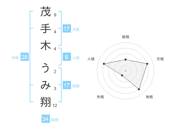 茂手木 うみ翔さんを姓名の画数から五運を鑑定