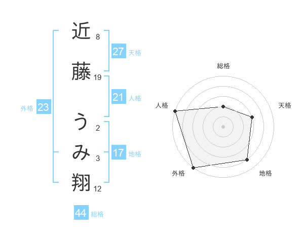 近藤 うみ翔さんを姓名の画数から五運を鑑定