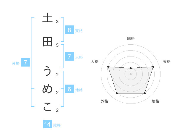 占い結果は姓名判断である以上、良い場合も悪い場合もありますが、決してお名前を誹謗中傷するものでなく、画数の自動計算によって得られたものです。また、本サイトの検索によって得られた鑑定結果で、第三者を誹謗中傷したり名誉を棄損するような行為を禁じます。