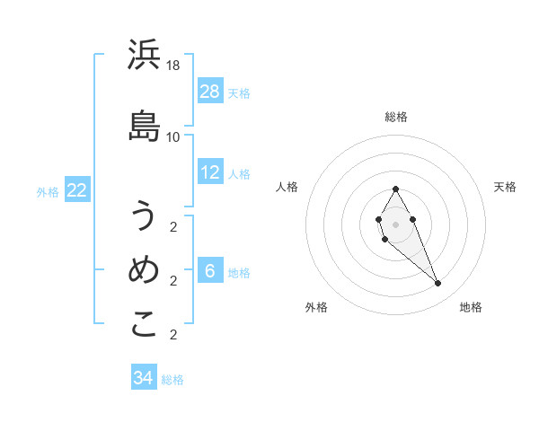 浜島 うめこさんを姓名の画数から五運を鑑定