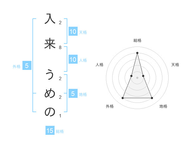 入来 うめのさんの総格は15画の4点!