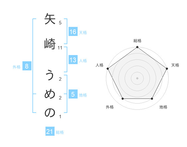 矢崎 うめのさんの総格は21画の5点!