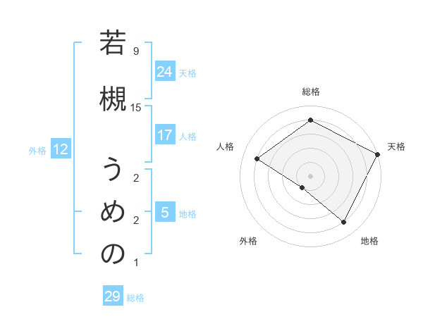 若槻 うめのさんを姓名の画数から五運を鑑定