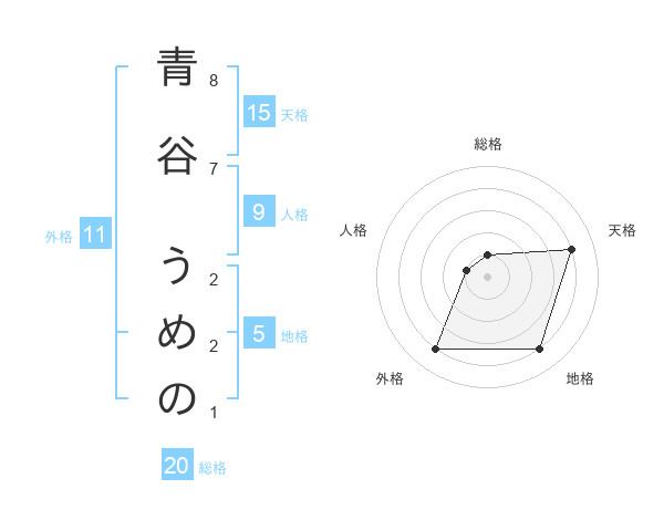 青谷 うめのさんを姓名の画数から五運を鑑定
