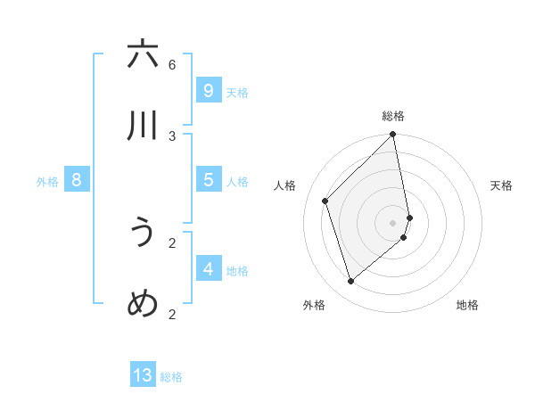 六川 うめさんの総格は13画の5点!