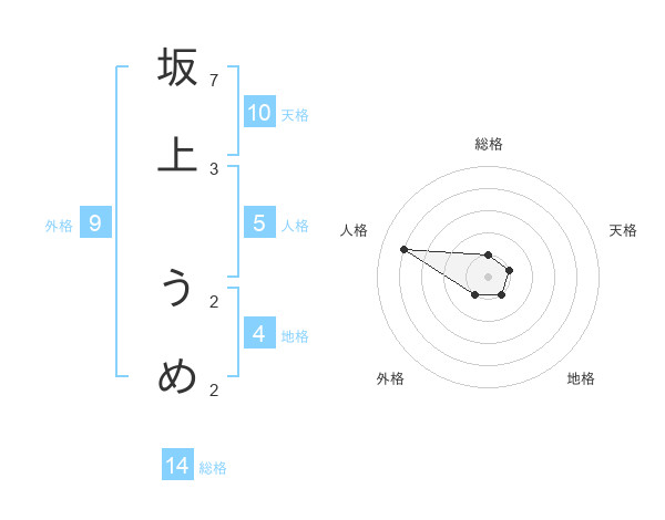 坂上 うめさんの天格は10画の1点!