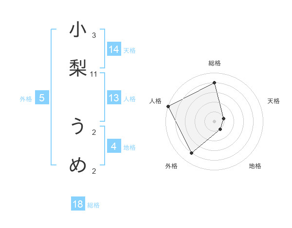 小梨 うめさんの外格は5画の4点!