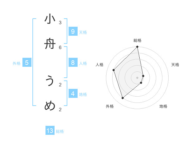 小舟 うめさんの総格は13画の5点!