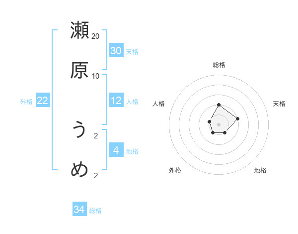 瀬原 うめさんを姓名の画数から五運を鑑定