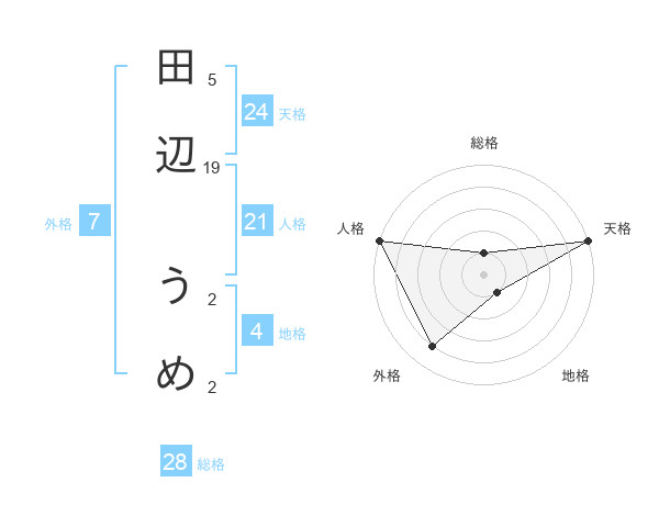 田辺 うめさんの総格は28画の1点!