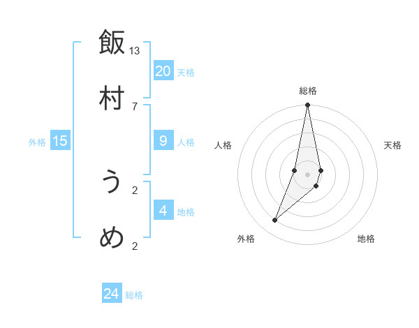 飯村 うめさんの総格は24画の5点!