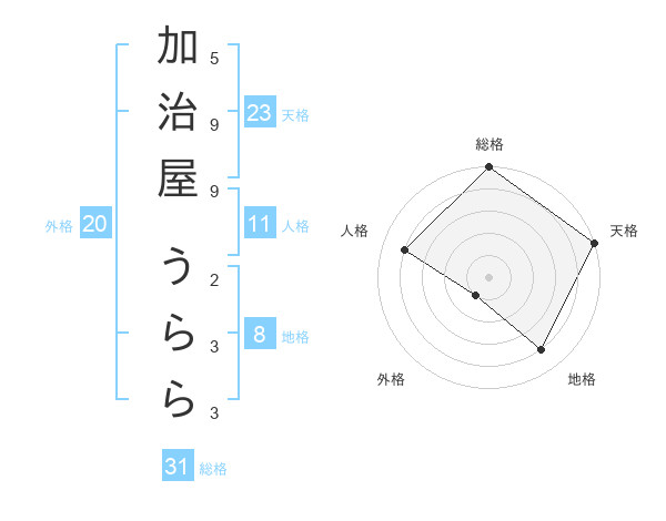 加治屋 うららさんの天格は23画の5点!