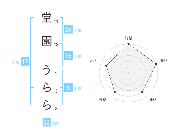 堂園 うららさんの天格は24画の5点!