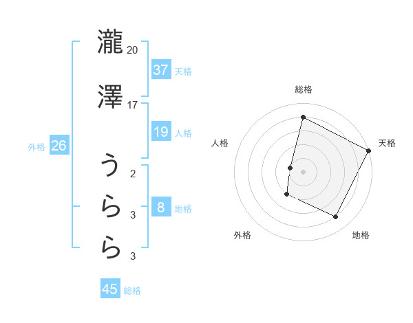 瀧澤 うららさんの天格は37画の5点!