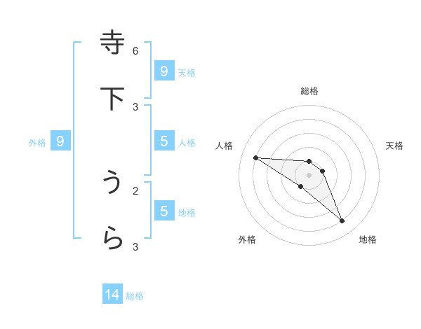 寺下 うらさんの総格は14画の1点!