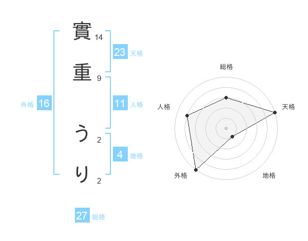 實重 うりさんの天格は23画の5点!