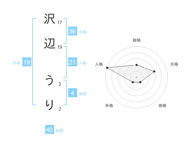 沢辺 うりさんの総格は40画の2点!