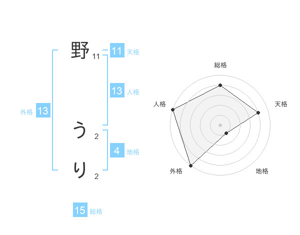 野 うりさんの外格は13画の5点!